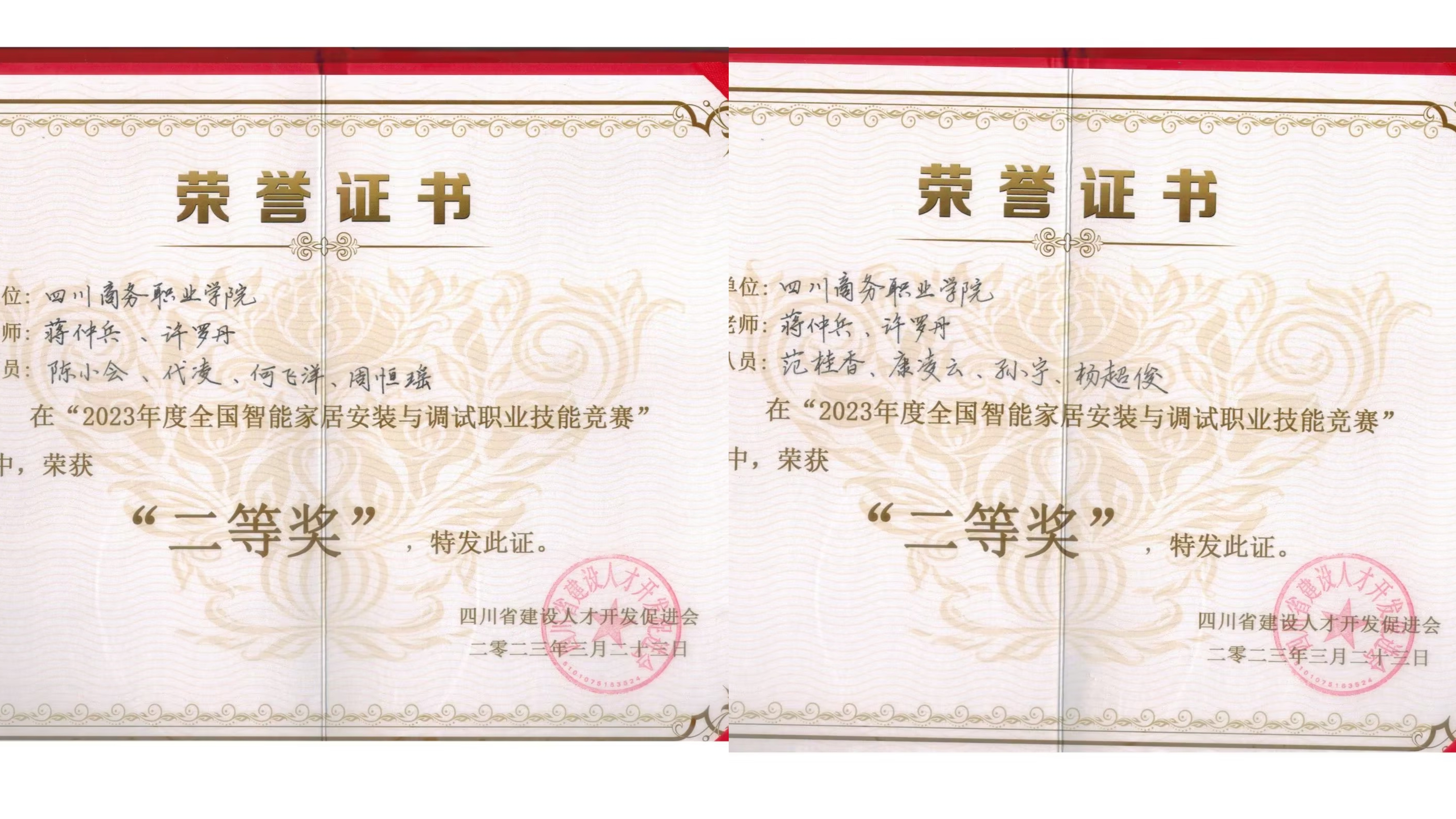 在3月23日结束的由四川省建设人才开发促进会主办、成都工业职业学院承办的“2023年度全国智能家居安装与调试职业技能竞赛”中,bv伟德信息技术系应用电子技术专业负责人蒋仲兵老师指导的2支代表队均获团体二等奖,这是应用电子技术专业学子首次参加此类比赛。
