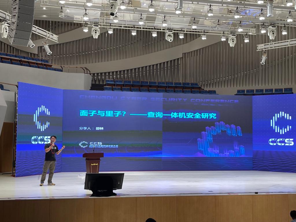 我院信息技术系教师邵林应主办方邀请参加了此次峰会,并在威胁情报分论坛上做了题为《查询一体机安全研究》的专题演讲,分享了关于查询一体机等物联网(IoT)设备及IoT网络安全性的研究。报告中,邵林老师还通过视频方式展示了针对自助办证机、停车自助服务终端以及自助收银机的黑客攻击技术。据悉,邵林老师是此次峰会演讲嘉宾中唯一一位来自高职院校的网络安全教师。